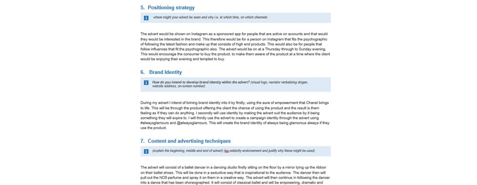 This post show's the pre-production done for my Chanel advert. The creative outcome can be seen in my showreel. The evaluation of this can be viewed on the spot below.